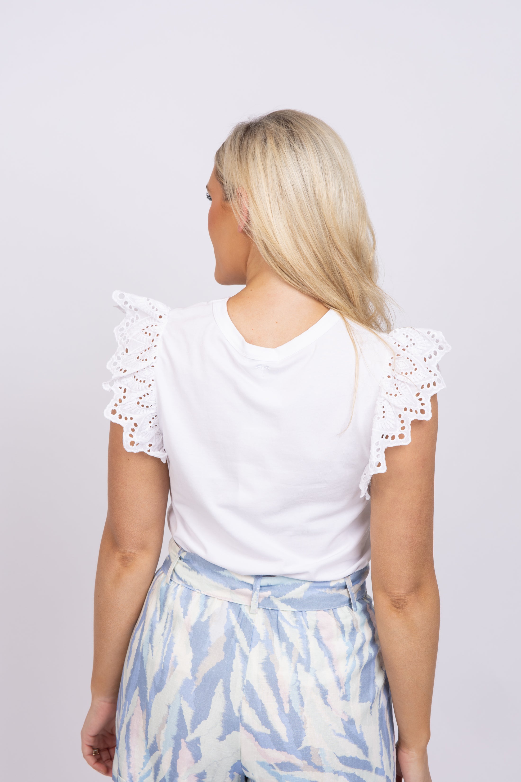 Feel the romance of summer in the Juliette Top. Its easy-to-wear crewneck and eyelet sleeves add a delicate touch to your wardrobe, making it perfect for sunny days and balmy nights. Style it with jeans or a skirt for the perfect, lighthearted look. Feel beautiful and timeless in the Juliette Top.