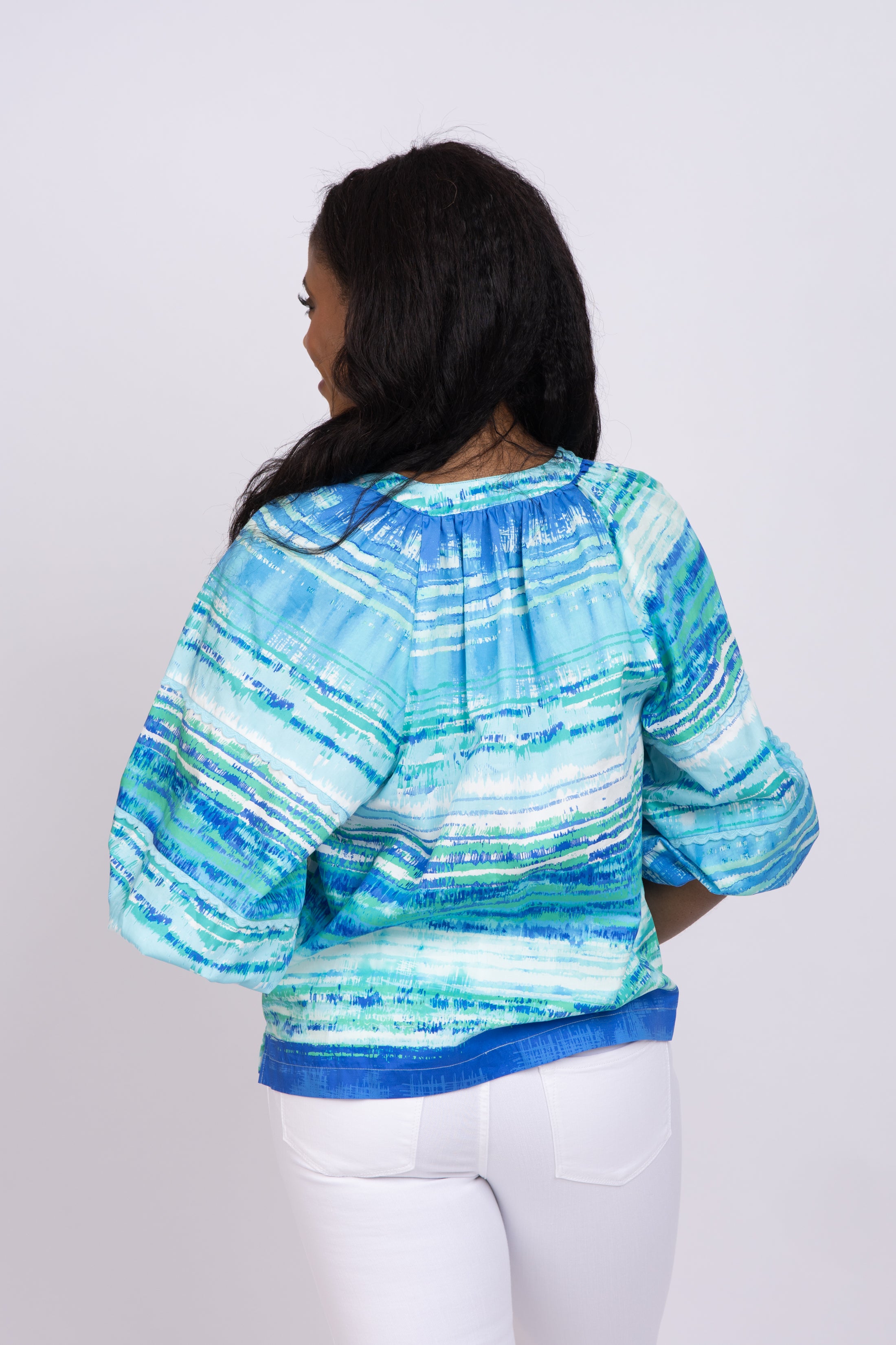 Introducing the tyler boe Molly Cotton Topper Top, an energizing blend of work and weekendwear. Combining a refreshing tie dye print with a stylish silhouette, this top offers effortless style that goes from day to night with ease. With the Molly Topper Top, you'll stay comfortable and chic all season long!