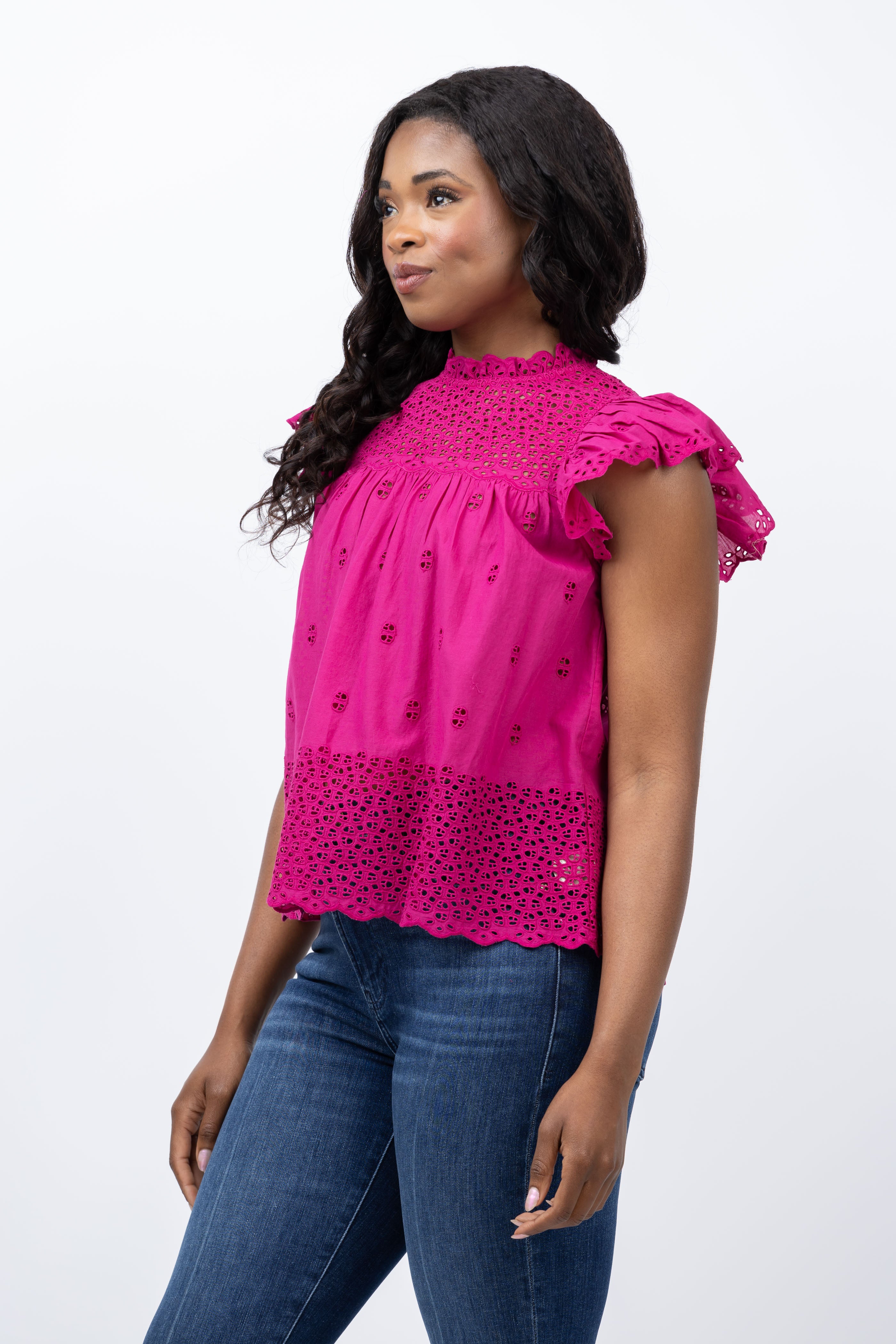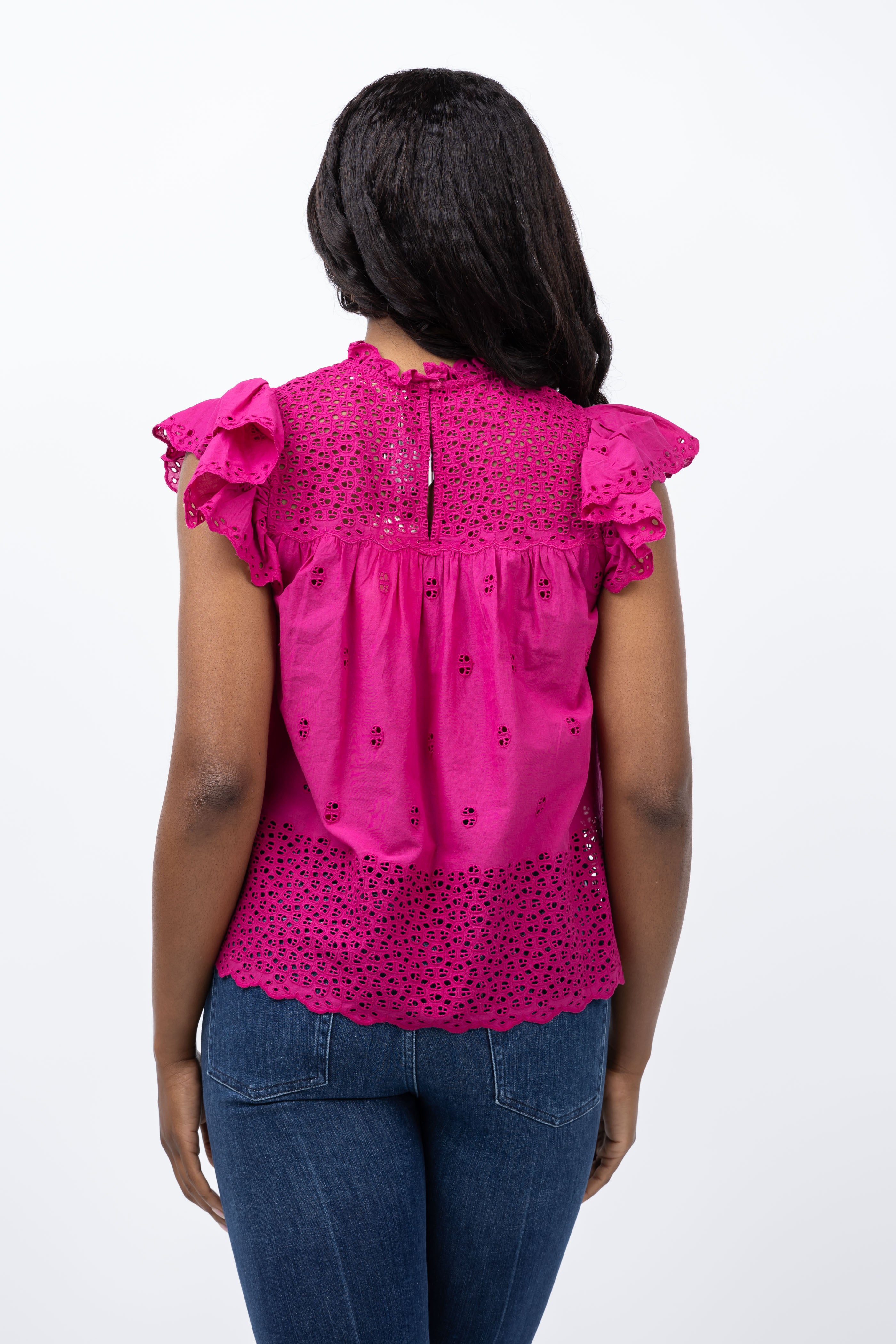 The Ulla Johnson Kassi Top in Ruby is a must-have for any fashion-forward individual. Featuring delicate ruffles at the neck and sleeves, this top exudes effortless style. With an elegantly loose fit, it is versatile and can be easily paired with your favorite pair of denim. The back buttoned keyhole adds a touch of sophistication to this chic top.