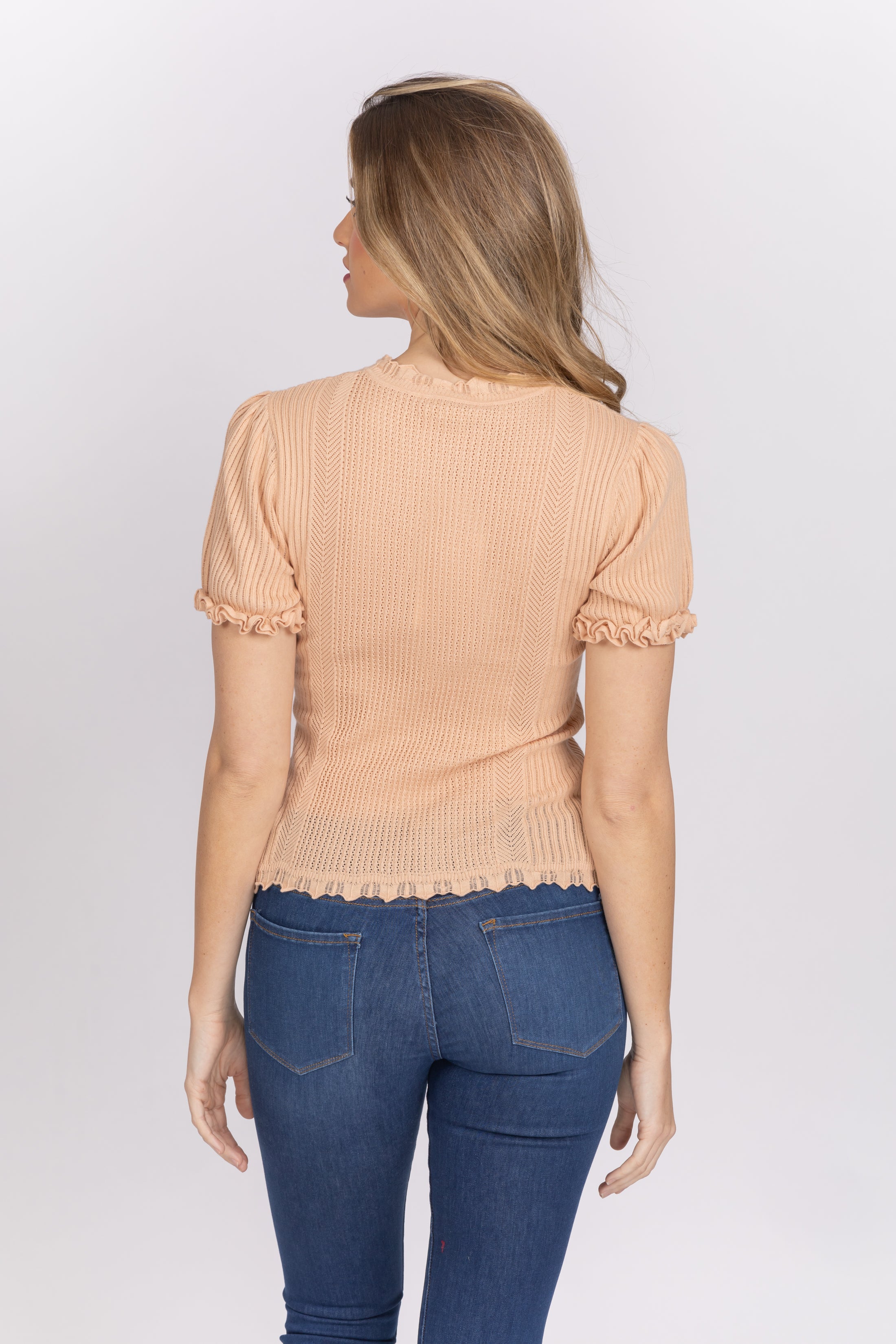 The Neri Top is a fabulous everyday knit. It is designed to fit on the body with a scoop neck and beautiful detailing on sleeves and hem.