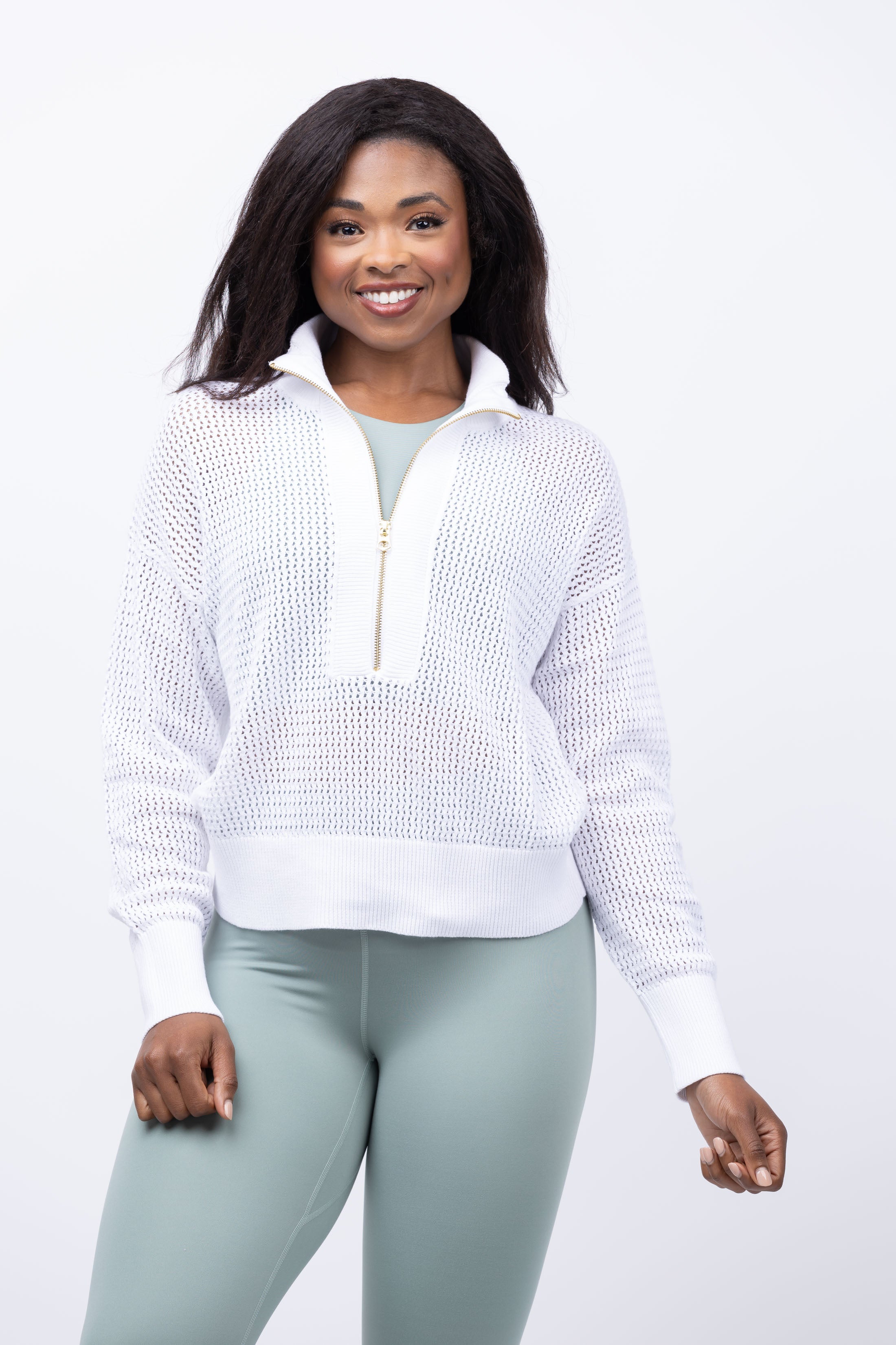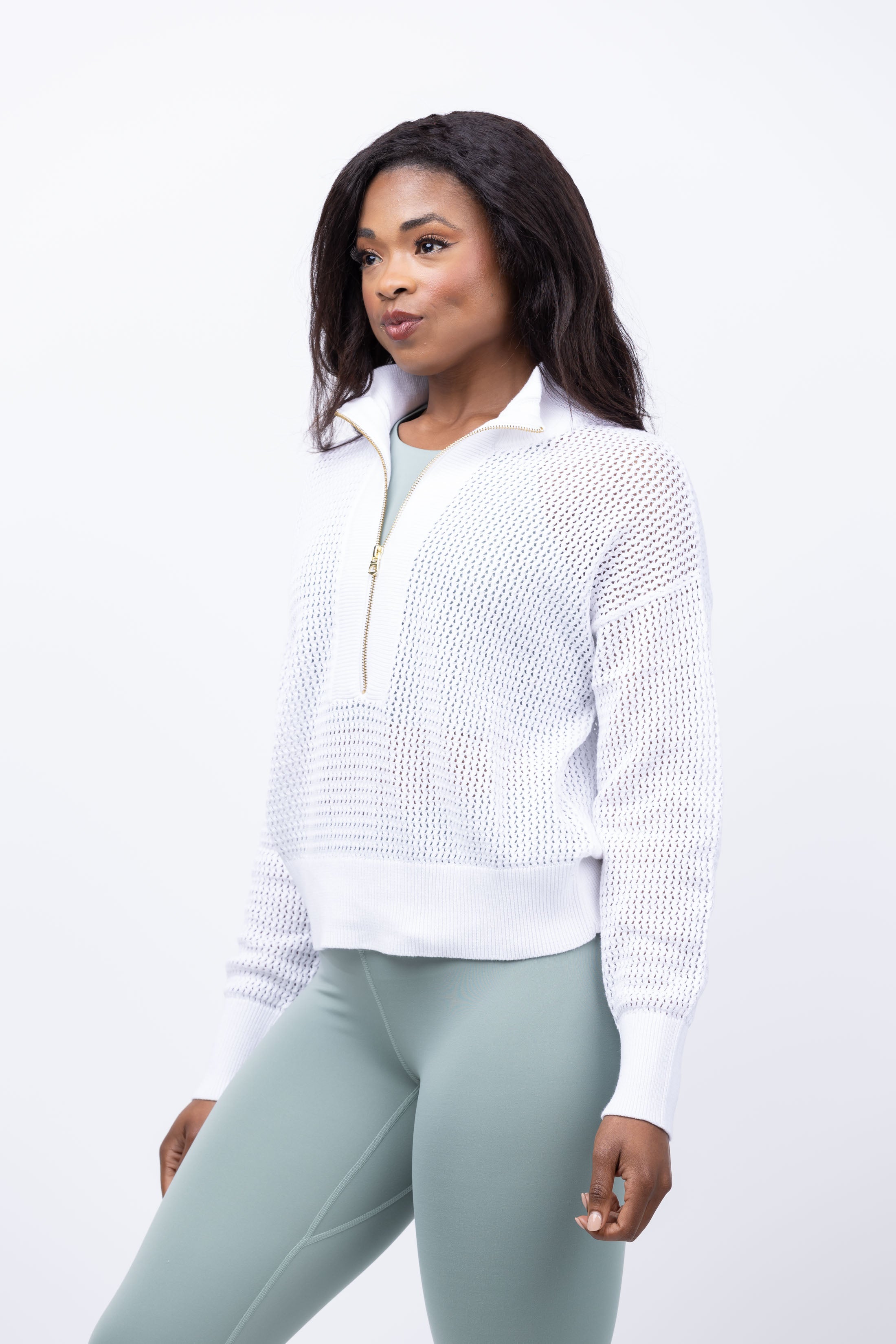 Varley Aurora 1/2 Zip Knit Pullover in White