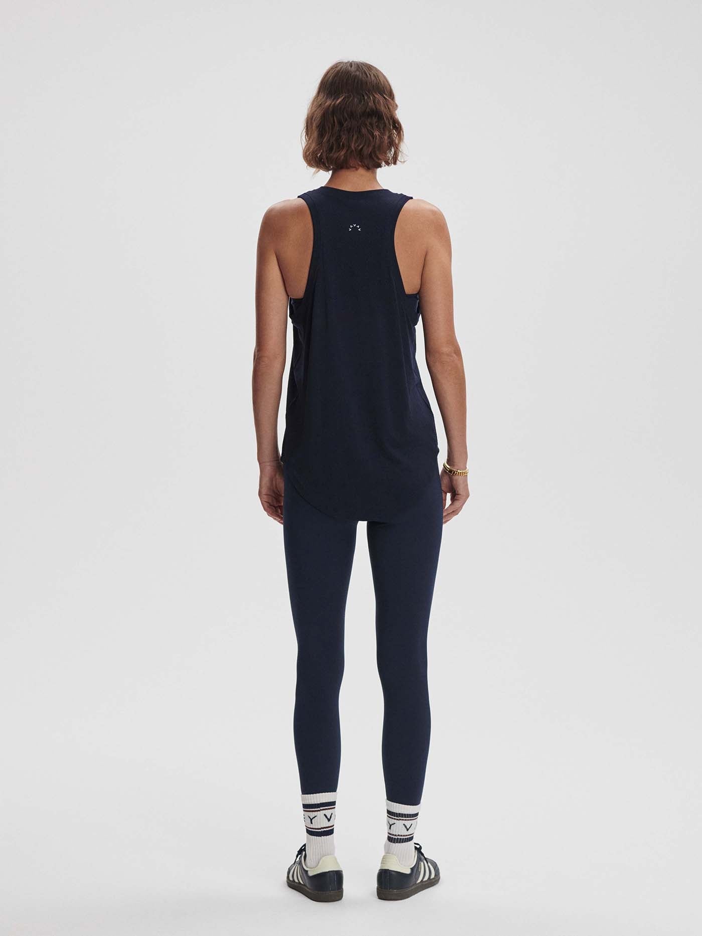 The Varley Dacey Longline Tank in Navy is the perfect blend of style and performance. This racerback tank features subtle textured perforation and built-in breathability to keep you cool and comfortable during any activity. Whether you're working out or running errands, this tank is a must-have for any wardrobe.