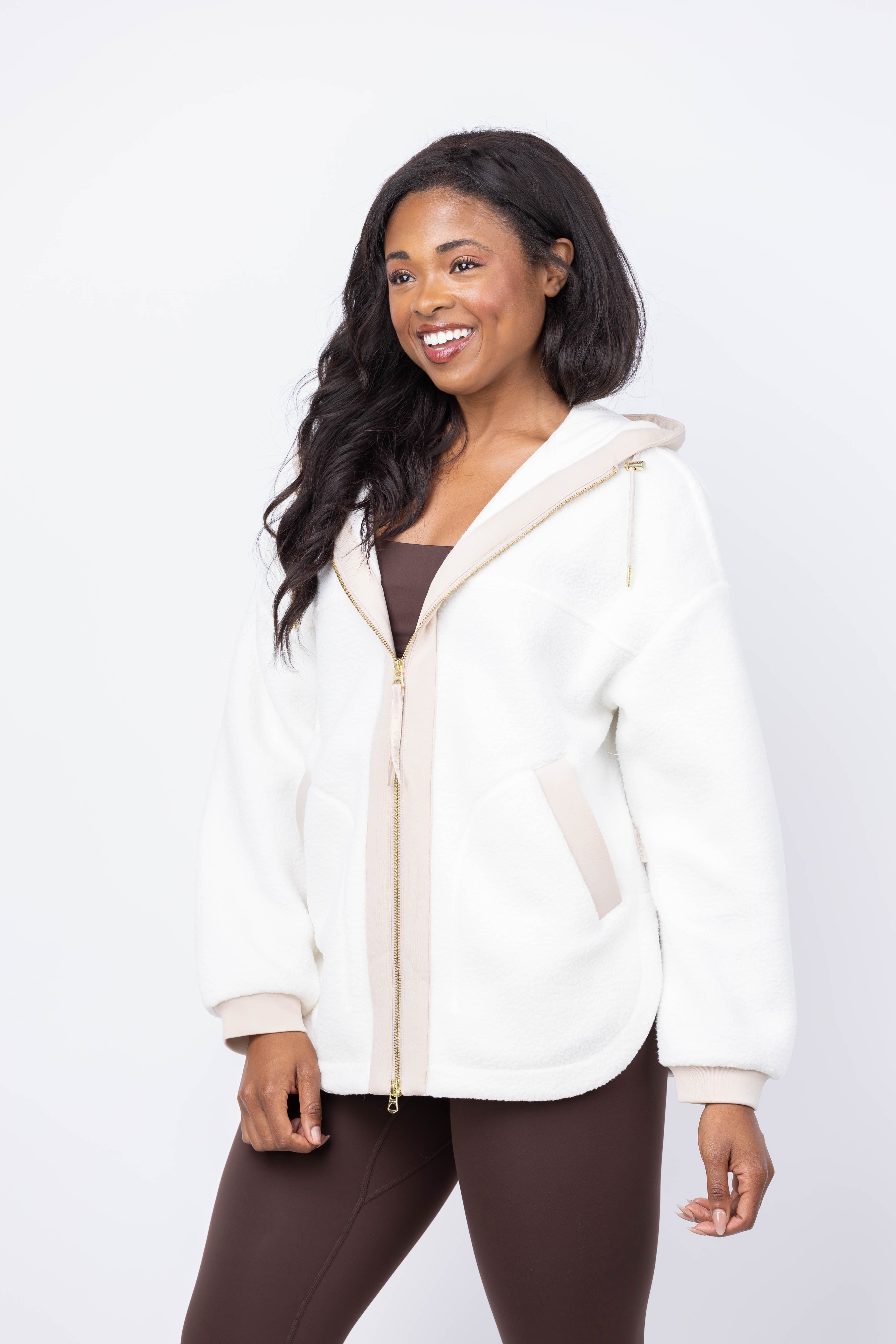 Stay warm and effortlessly stylish with the Varley Fey Relaxed Fleece. This thoughtfully designed layer combines plush fleece with patches of signature DoubleSoft® fabric, delivering exceptional warmth without sacrificing comfort. Perfect for brisk outdoor walks or cozy indoor lounging, the Fey wraps you in softness while the curved hem and gently shaped sleeves create a flattering silhouette that works for every body. Attention to detail sets this piece apart—contrast accents, dye-matched drawcords, and branded zip pullers elevate the design, while generously sized pockets keep your hands warm and essentials close. Whether you're layering for winter adventures or reaching for it on casual days at home, the Fey delivers the perfect combination of warmth, comfort, and contemporary style that makes it an instant favorite.