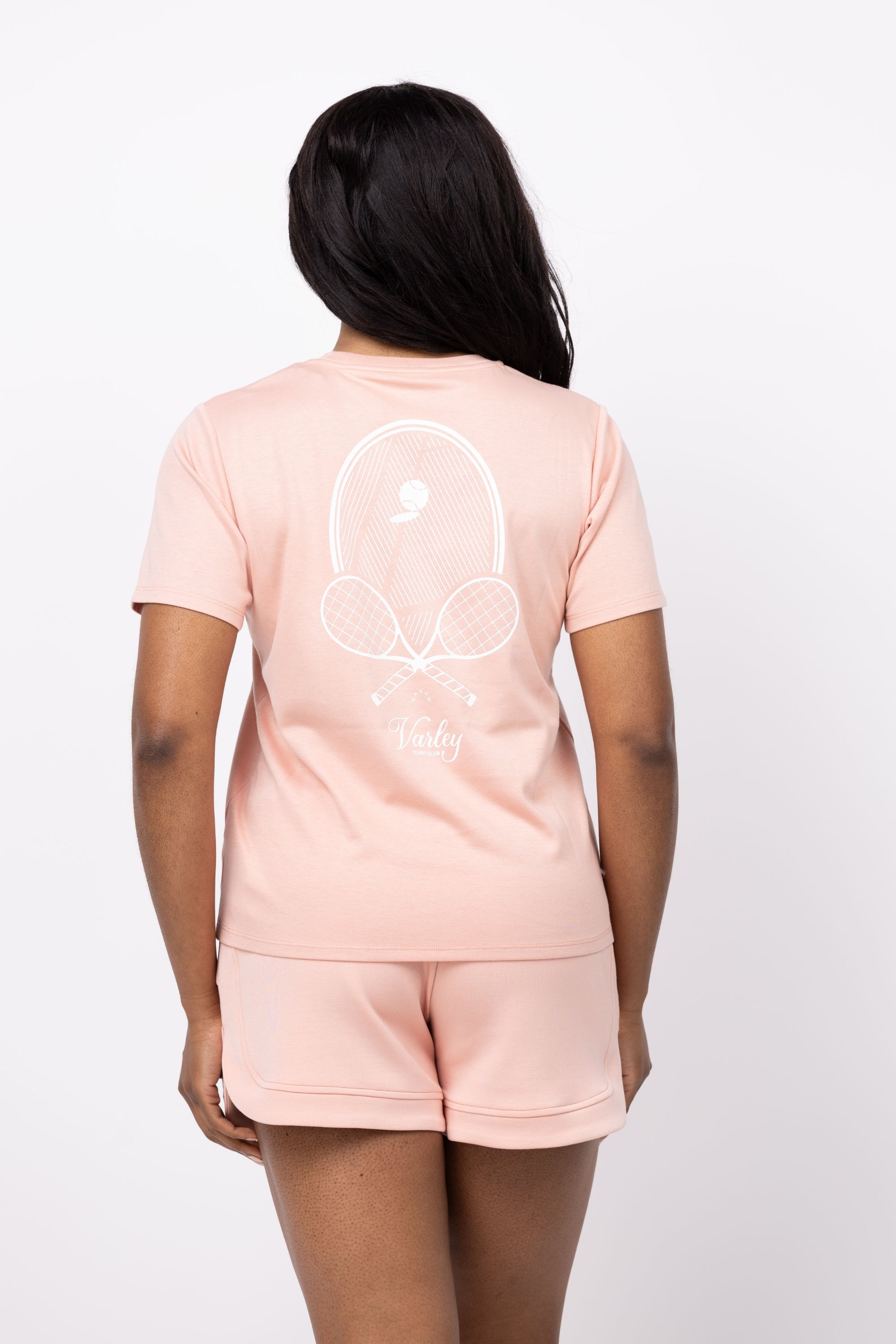 Introducing the Varley Mattie Branded Tee, the perfect blend of classic style and modern design. Made from soft pima cotton pique, this updated version of the Coventry tee features a smaller Varley emblem with a stylish racquet design on the chest, and a larger one on the back. Elevate your wardrobe with this must-have piece!