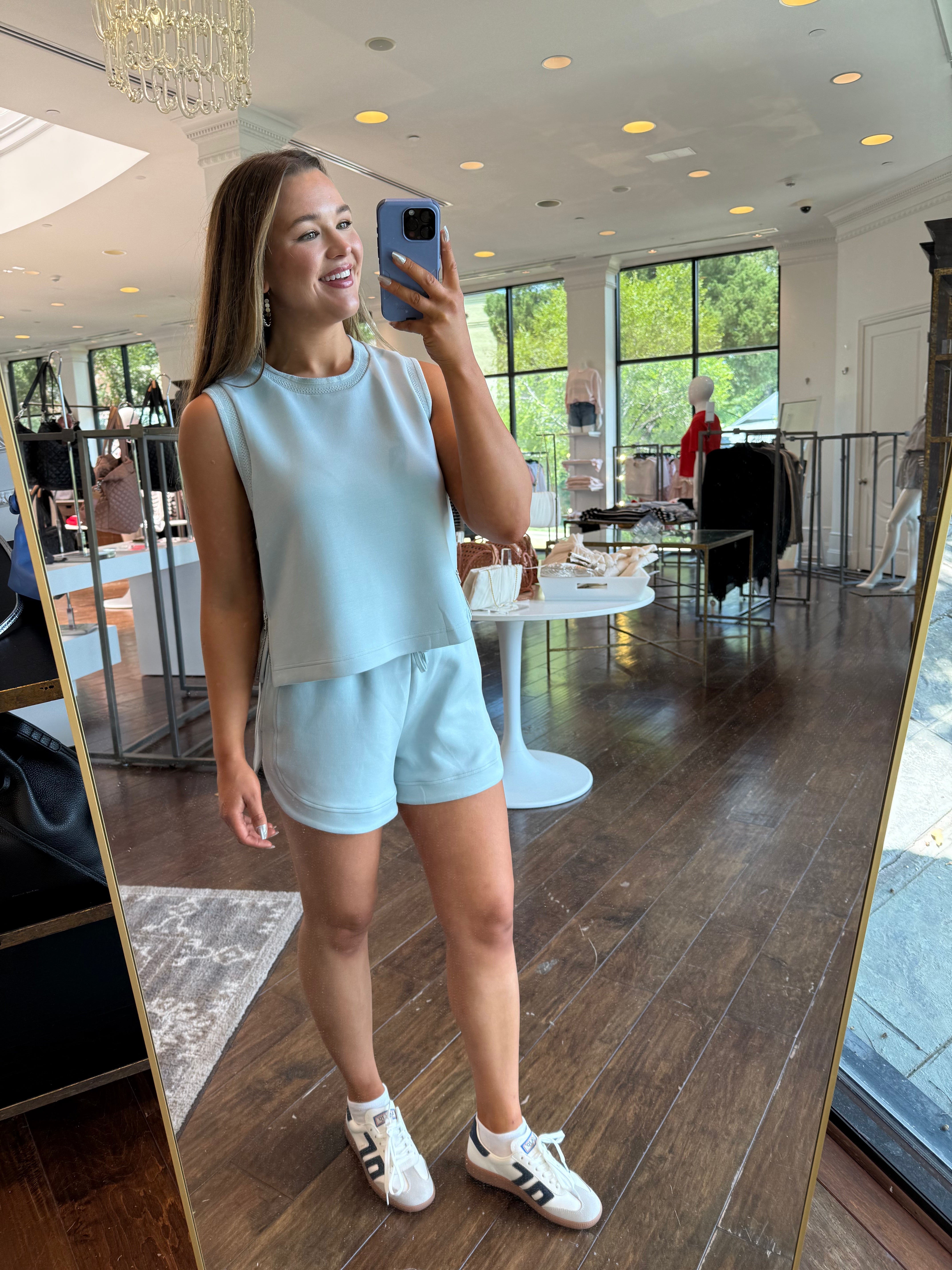 Embrace summer in style with the Varley Shea Crop Tank in Ether Blue. This sleek sleeveless design combines luxurious comfort and sophisticated details, crafted from our signature DoubleSoft® fabric that feels incredible against your skin. The classic crew neck and delicate pointelle knitted trims create an elevated look, while exposed side zips add contemporary edge to this versatile piece. Complete your premium athleisure ensemble by pairing with matching DoubleSoft® shorts for an effortlessly coordinated outfit that transitions seamlessly from workout to weekend.