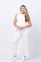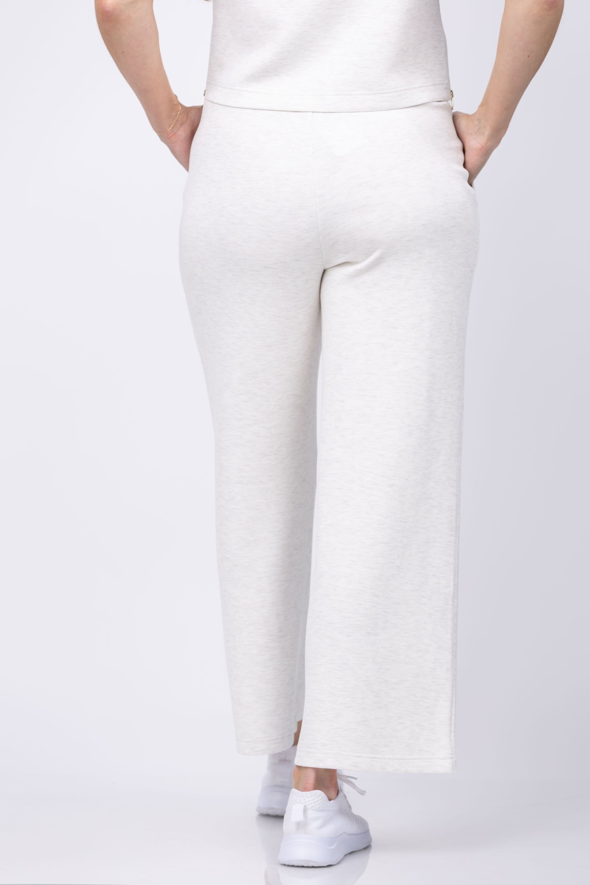 Indulge in luxury loungewear with Varley's The Wide Leg Pants 28" in Ivory Marl. Crafted from our coveted DoubleSoft® fabric, these pants deliver an unparalleled feeling against your skin while maintaining a polished appearance. The high-rise waist creates a flattering silhouette, while the wide-leg design offers effortless sophistication and freedom of movement. The elasticated waistband with internal drawcord ensures a perfect fit, and distinctive pink tuck detailing adds a subtle touch of elegance. Versatile enough for lounging at home or stylish enough for casual outings, these pants are the ultimate combination of comfort and refined style.