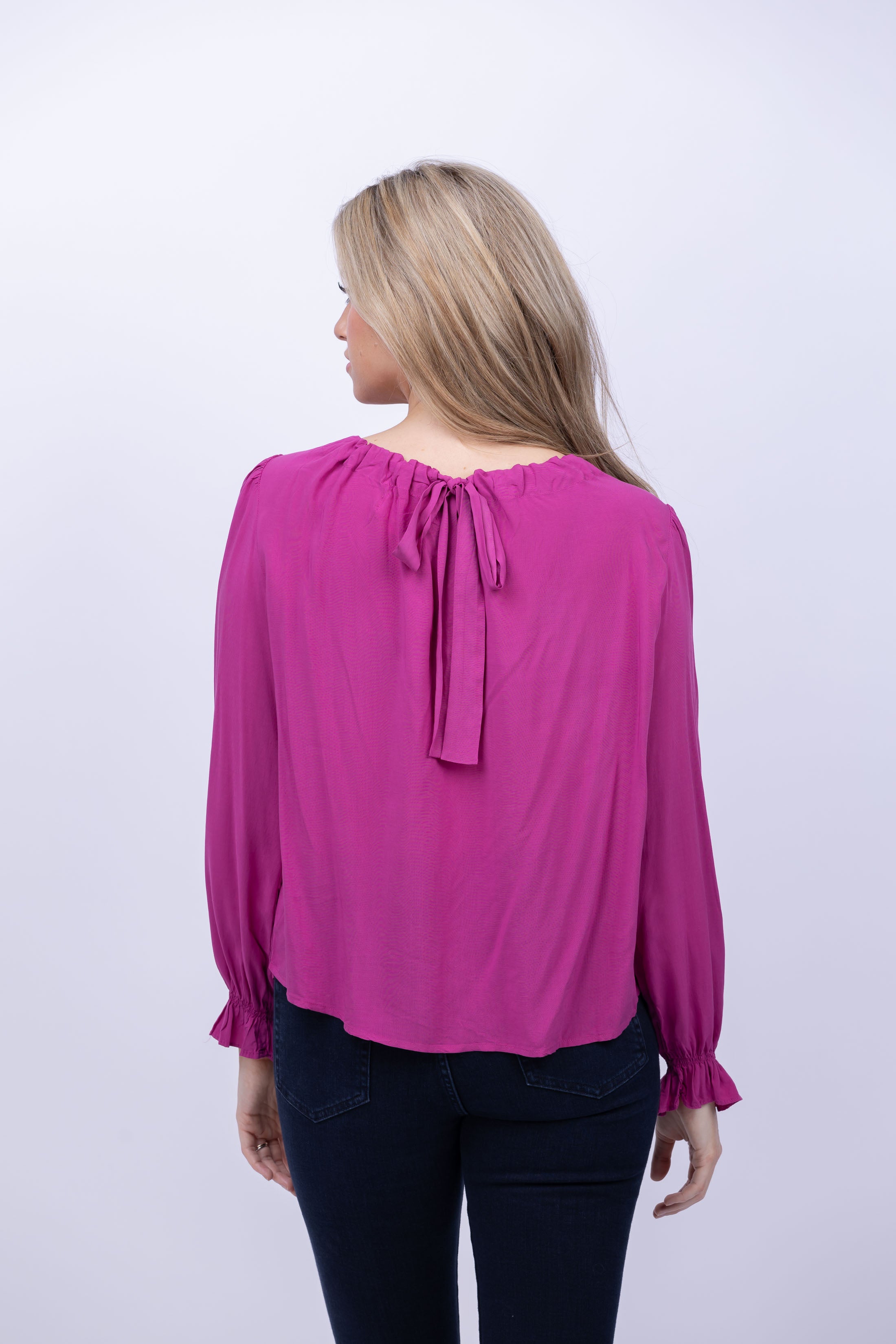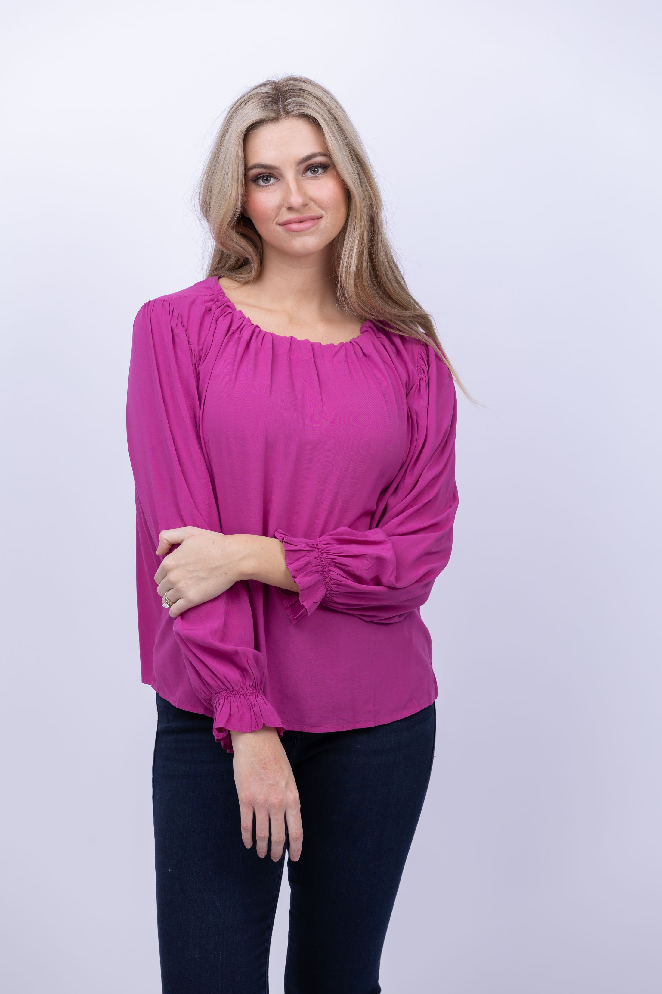 This Velvet Bristol Top is the perfect addition to your wardrobe! Its hot pink hue, elastic neckline and cuffs create a mini bell sleeve that will instantly add a vibrant, stylish vibe to any ensemble. Whether you’re dressing up for a party or dressing down for a brunch, this top will make you look and feel fabulous.