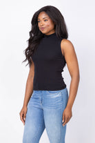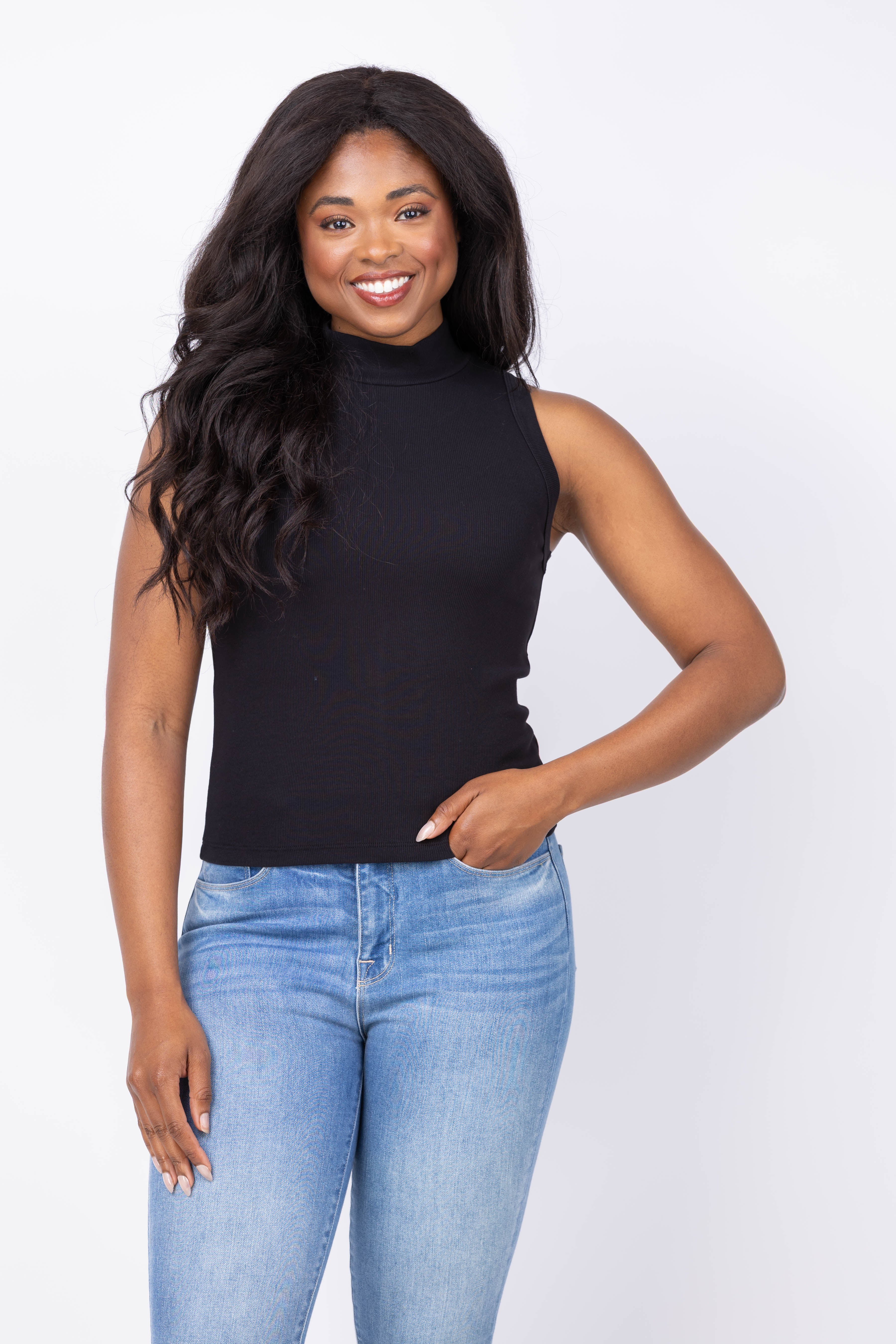 Elevate your layering game with the Velvet by Graham & Spencer Cean Tank in Black. This ribbed mockneck tank offers a sleek, modern silhouette that enhances any outfit with understated elegance. Its soft, stretchy fabric ensures a comfortable fit, making it perfect for layering under jackets or wearing alone for a chic, minimalist look. Add versatile sophistication to your wardrobe with this essential tank.
