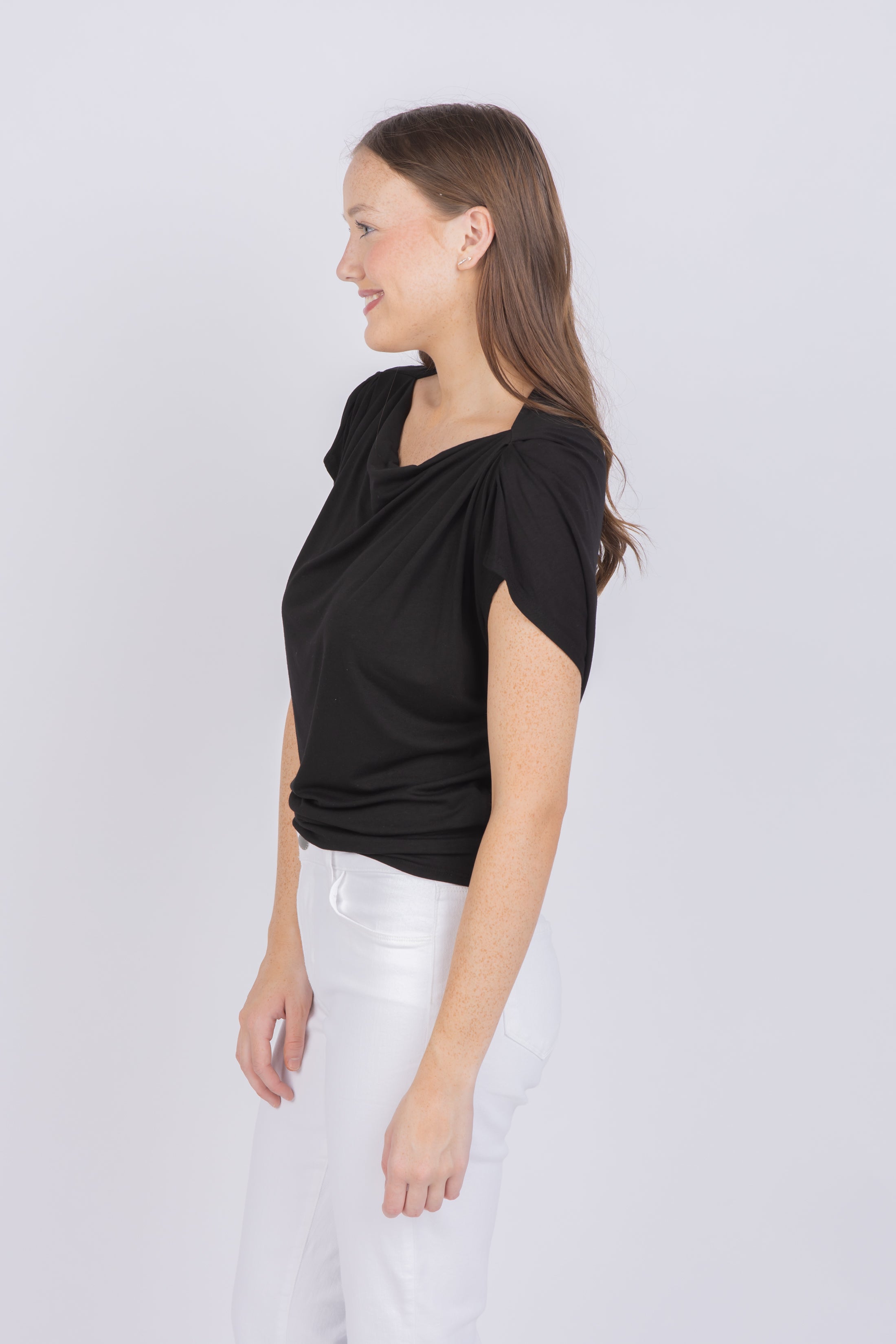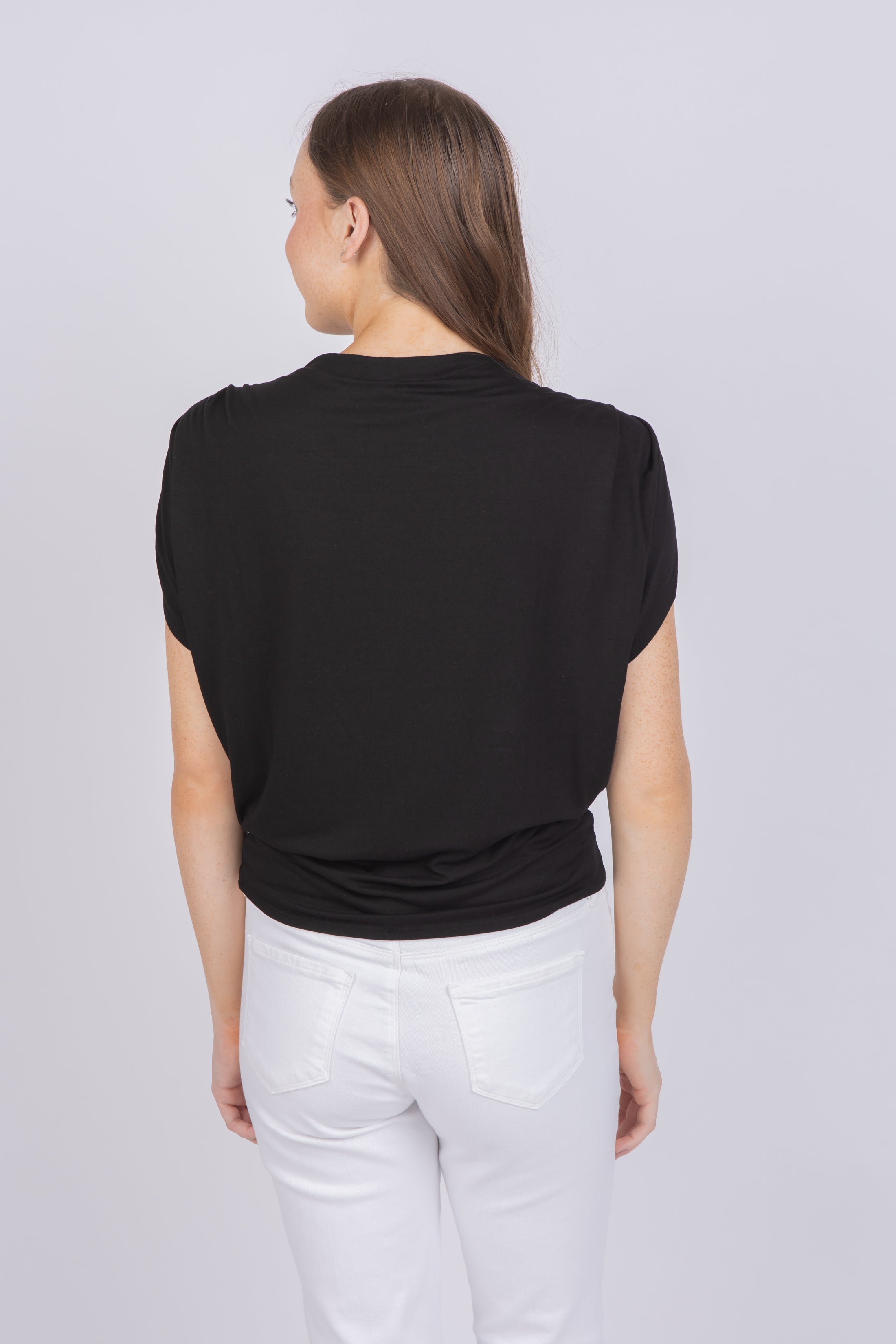 The Velvet Paulina Viscose Jersey Top is perfect for effortless casual style. Crafted from luxuriously soft viscose and elastane blend. The top features a relaxed silhouette and a fitted waistline for a flattering look. The boatneck and off the shoulder styling is finished with ruched shoulder detail for a chic appeal.