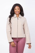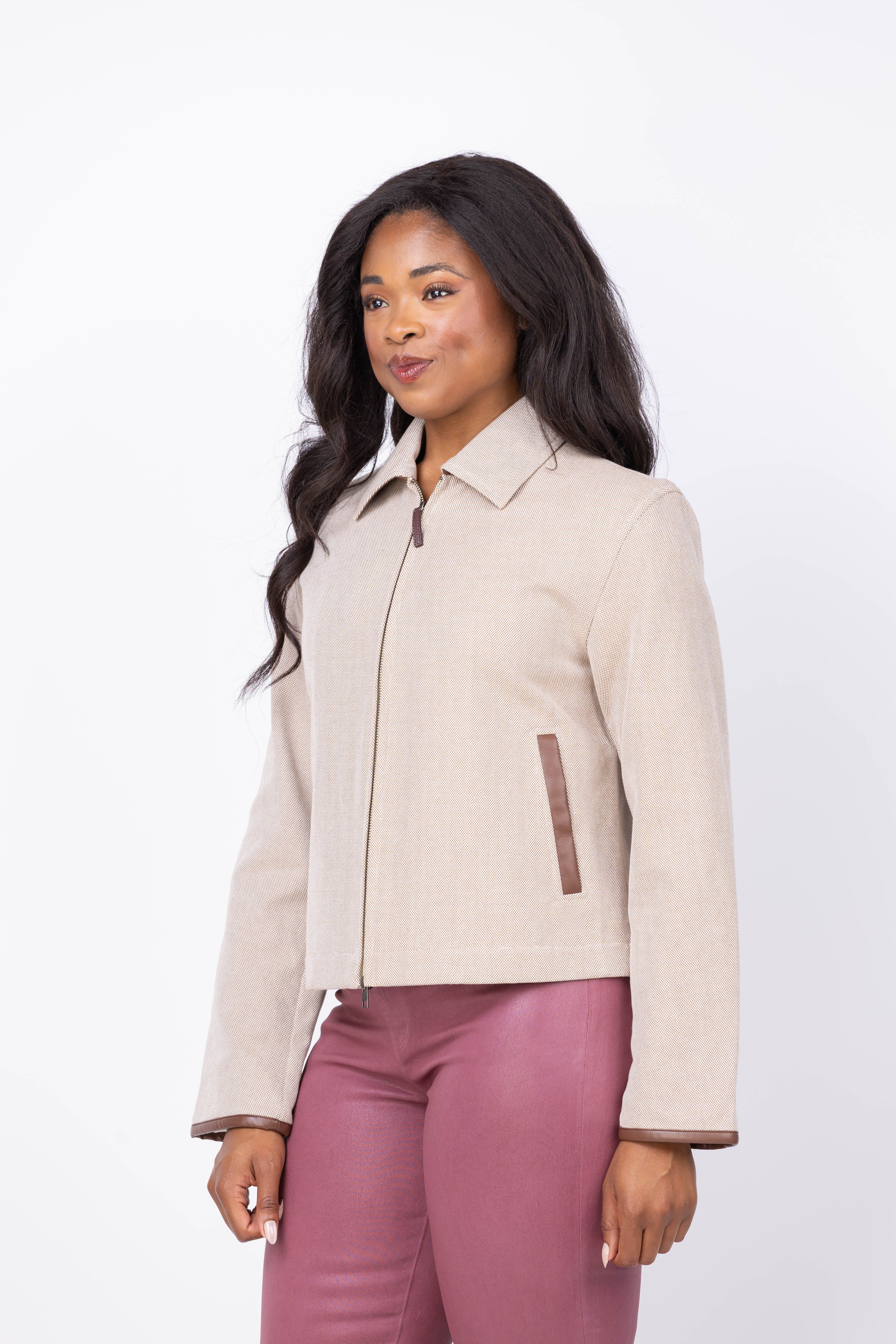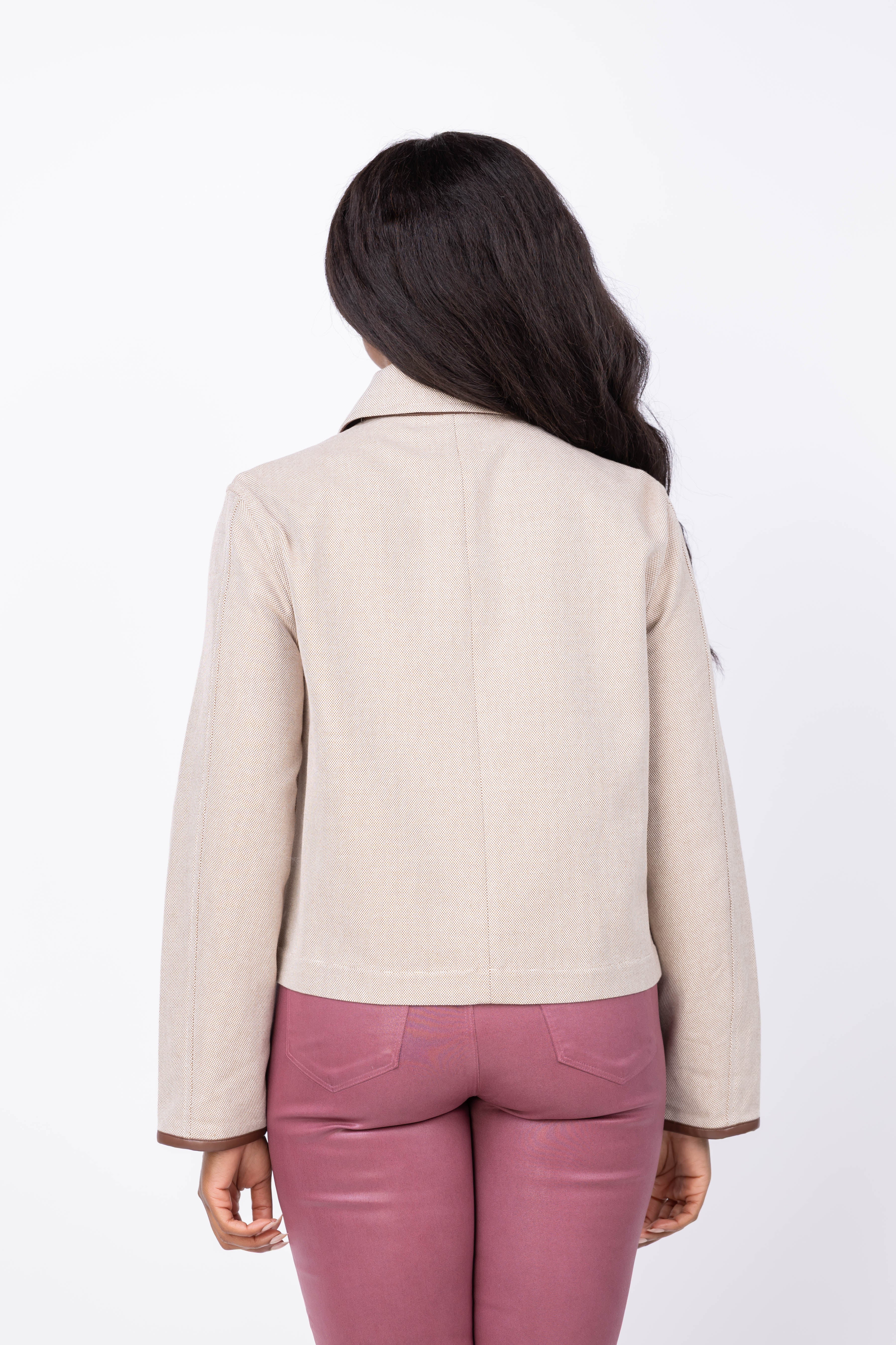 Vince Faux Leather Trim Cropped Jacket in Villa Stone