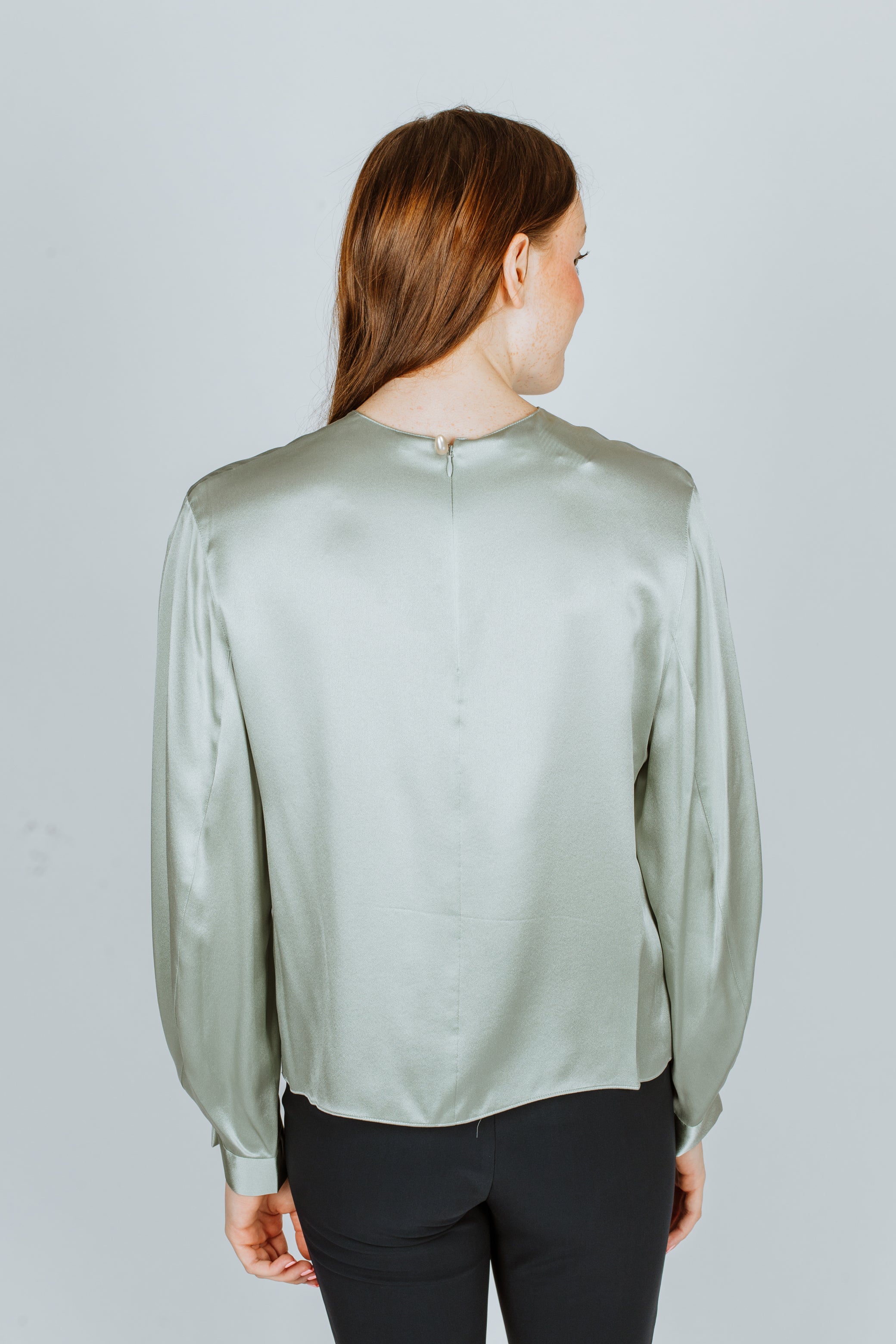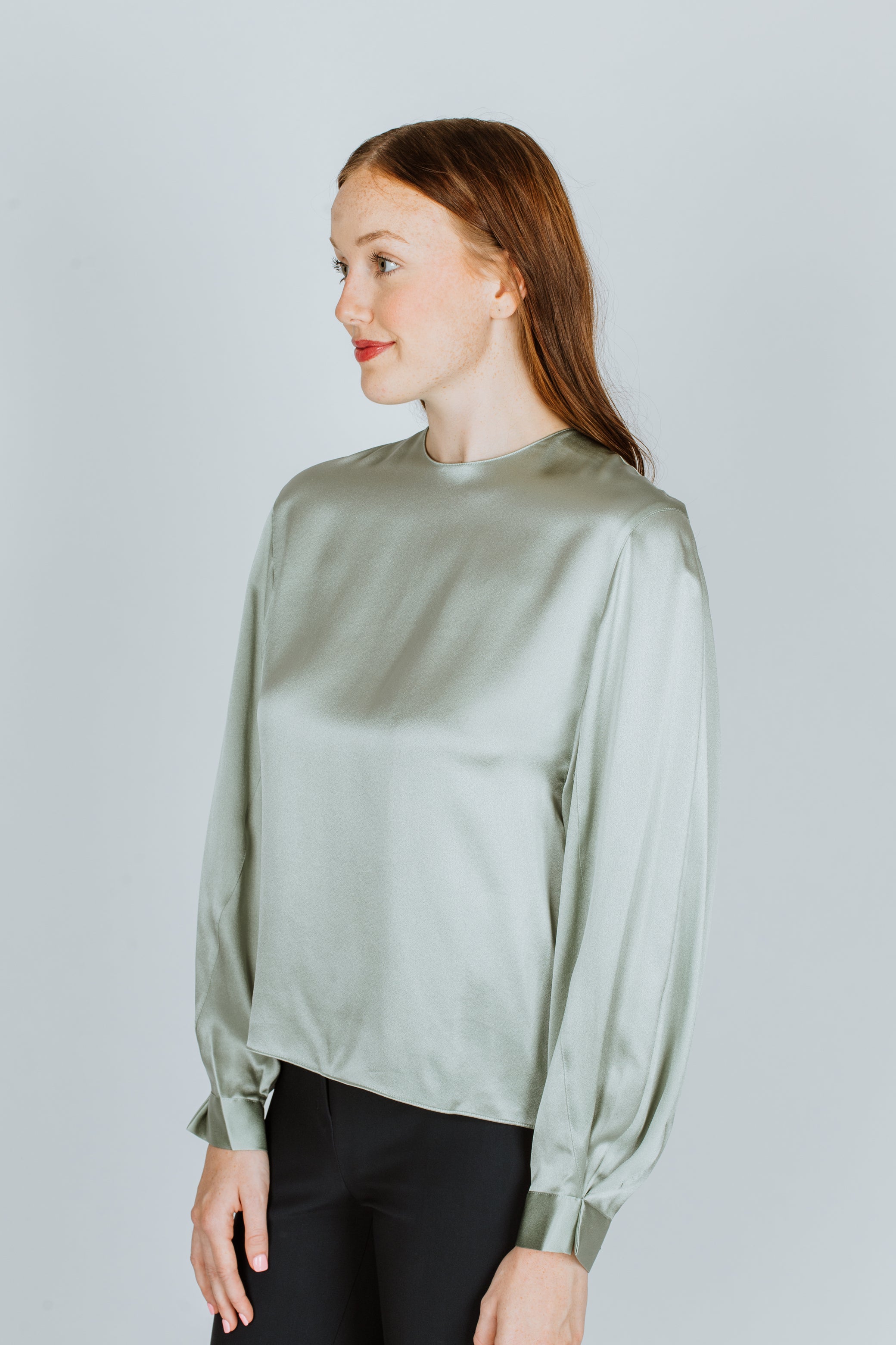 Vince Pleated Cuff Crew Neck Blouse Mint Glass