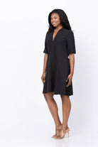 Experience effortless elegance with the Vince A-Line Short Dress in Black. Crafted from a sustainable blend of TENCEL™ lyocell, nylon, and wool, this dress offers a soft drape and a unique textured feel. Its knee-grazing silhouette flatters every figure, while discreet side-seam pockets add practical charm. Perfect for any occasion, this dress combines comfort, style, and thoughtful design in one versatile piece.