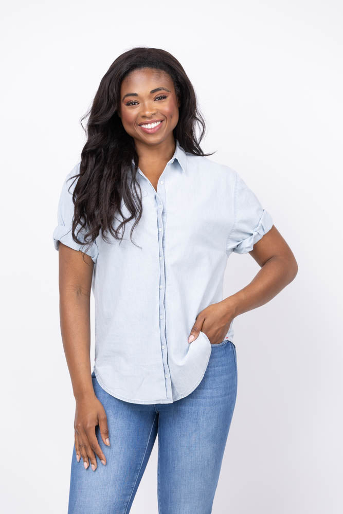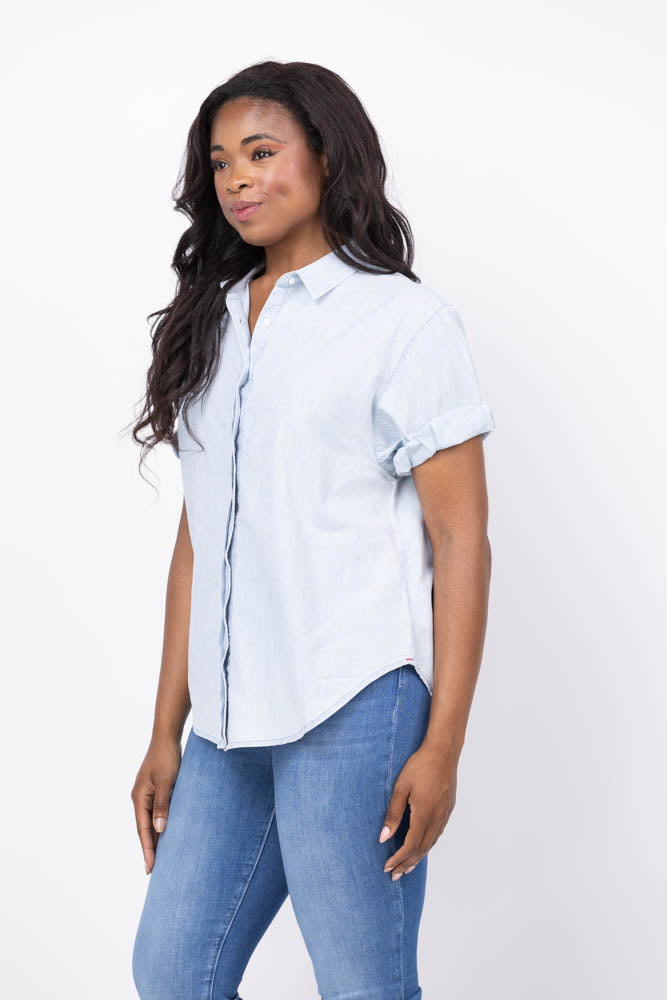 Step into effortless style with the XiRENA Channing Shirt in Air Blue. Crafted from lightweight, soft-woven cotton chambray in a classic light blue wash, this shirt blends casual comfort with a "boy meets girl" edge. Its timeless design makes it a versatile essential you'll reach for season after season, perfect for relaxed, everyday wear with a touch of cool sophistication.
