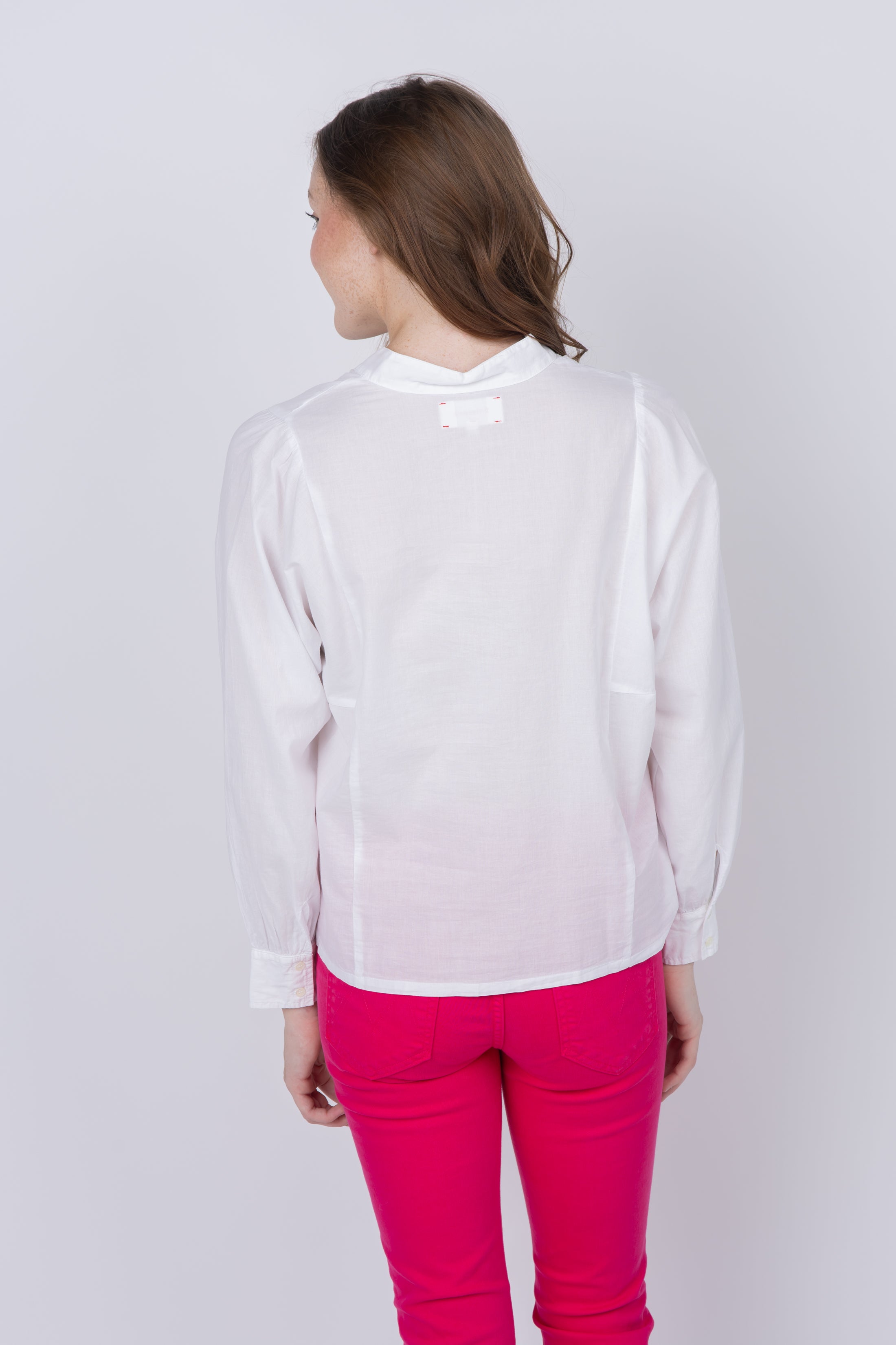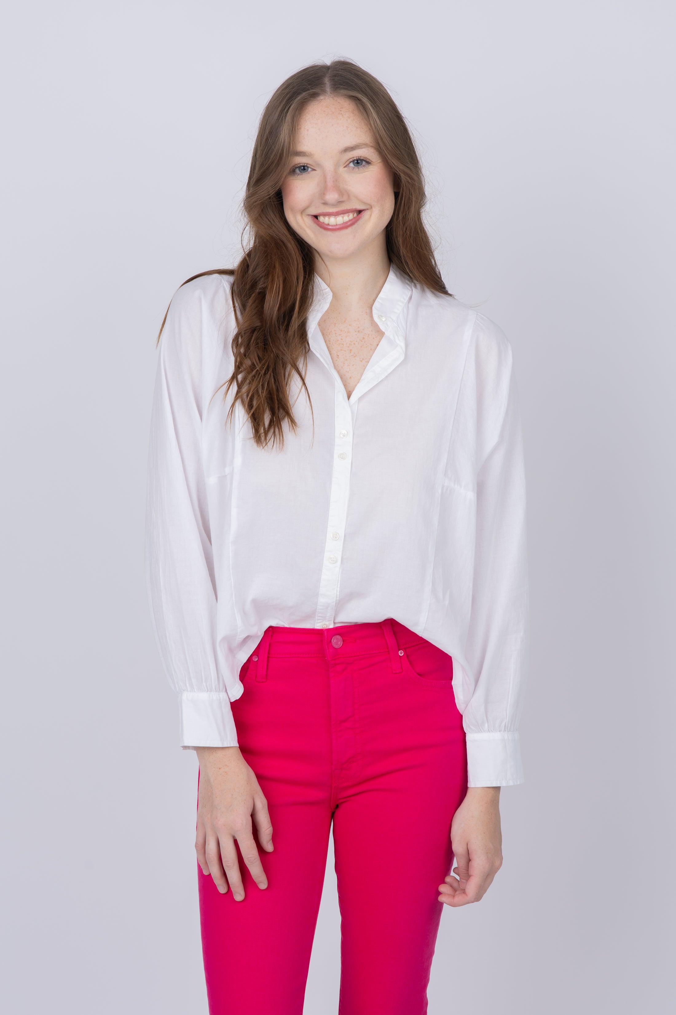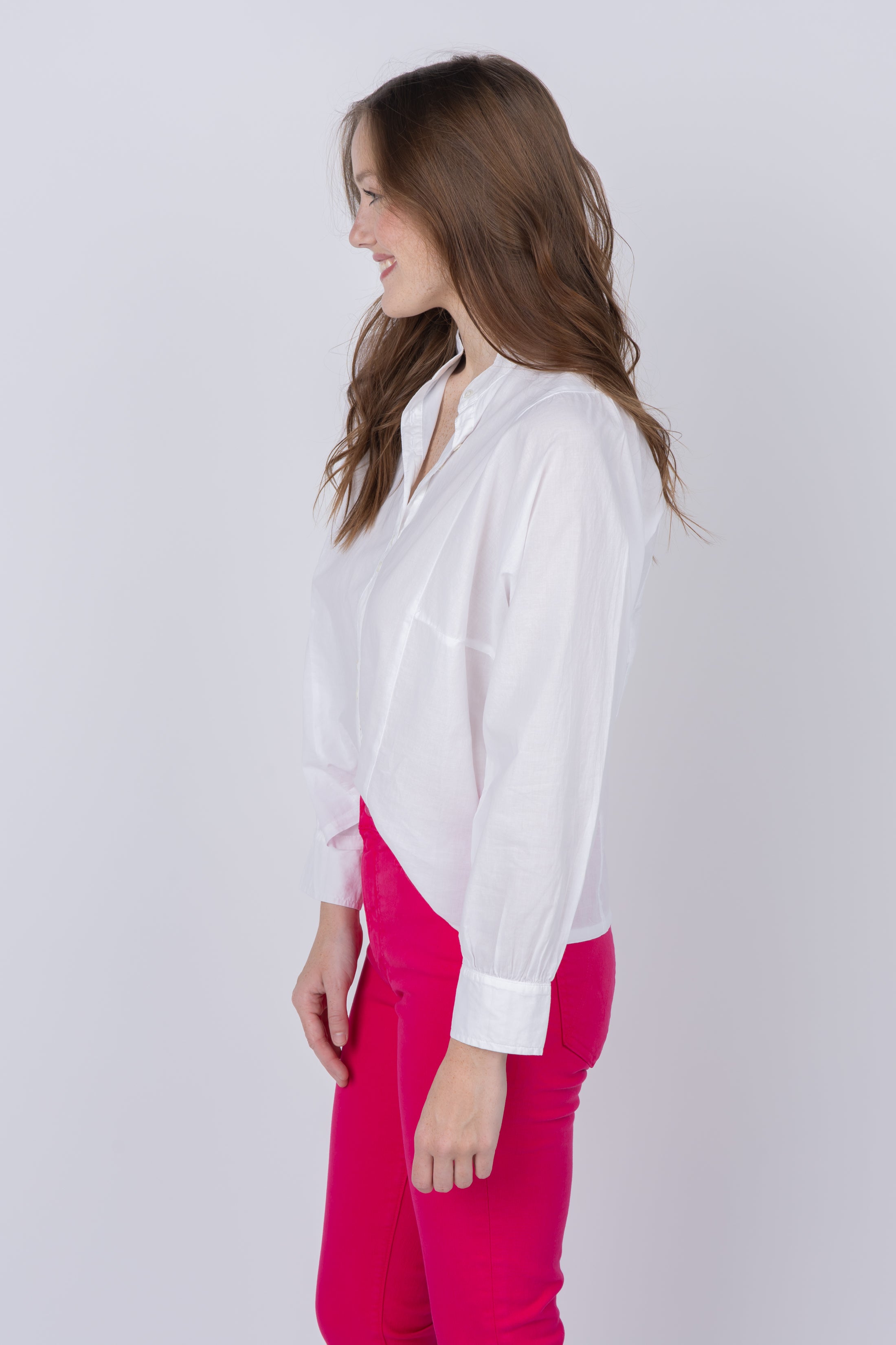 Our Gemma Shirt brings classic style and effortless comfort. Crafted with lightweight woven cotton-poplin, this band-collar blouse features double button detail, long dolman sleeves with a button cuff, shirring at the shoulder, and seam details for added chic. Elevate every look with Gemma!
