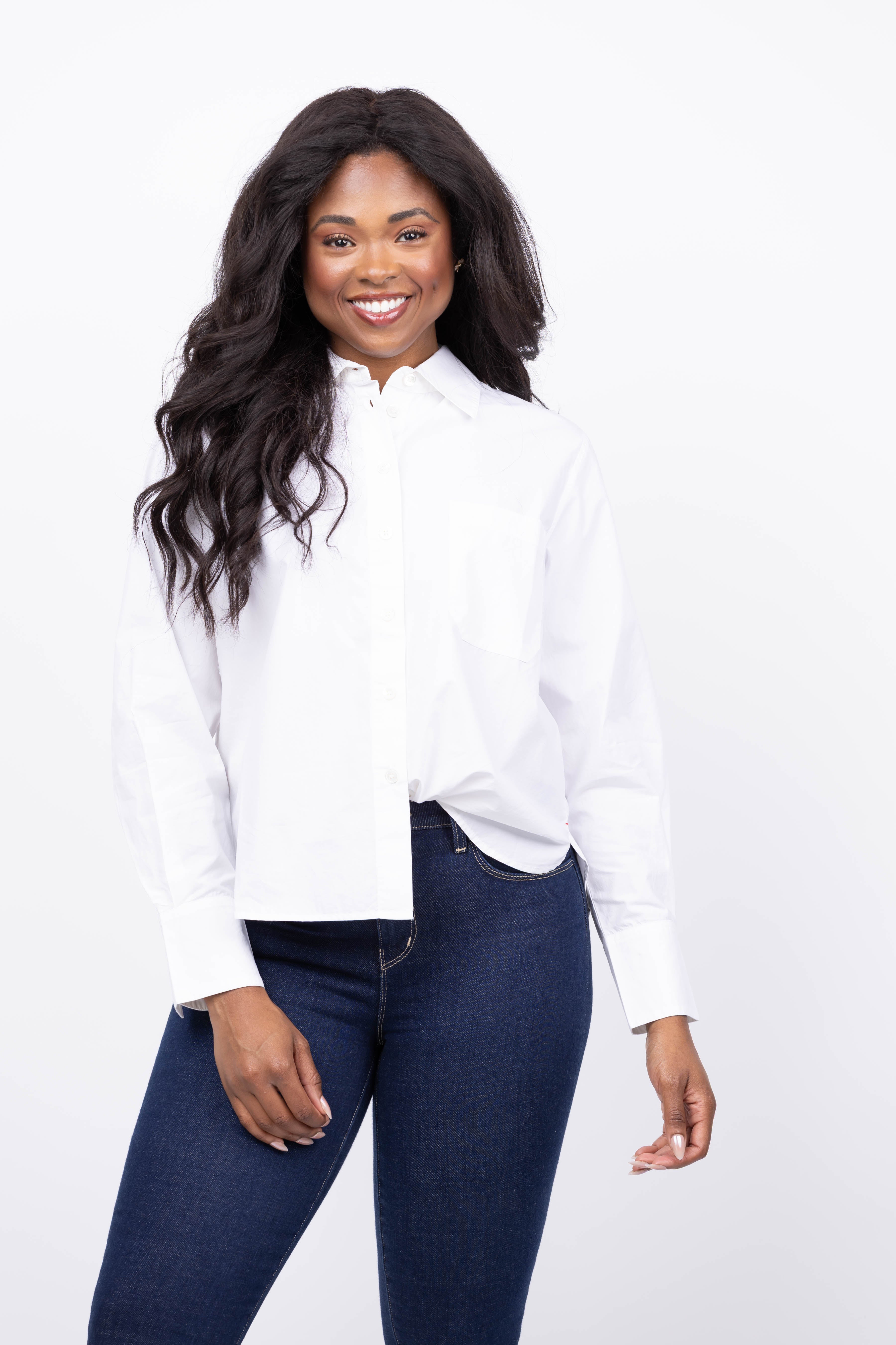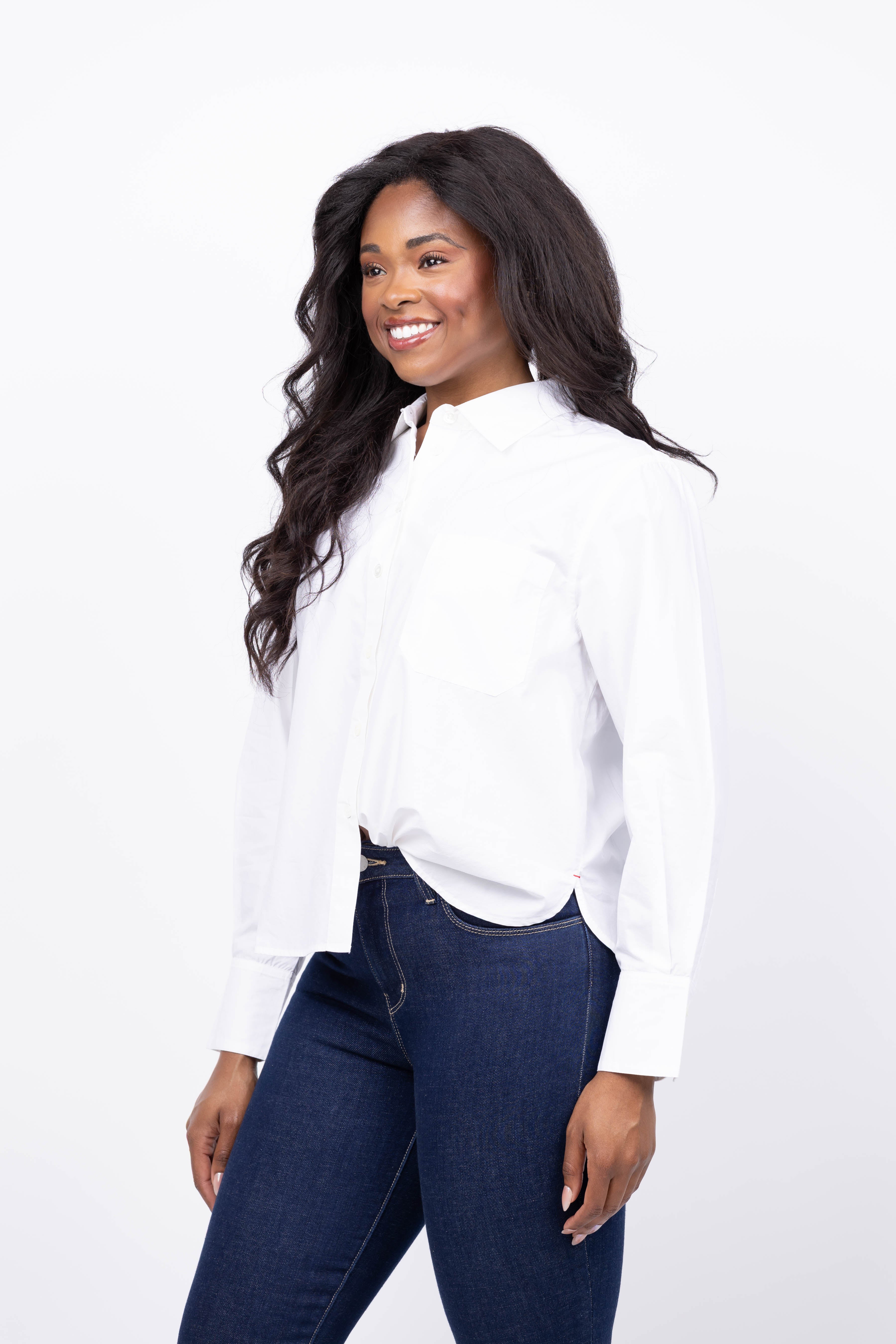 The XiRENA Monroe Shirt in White offers a refined, crisp look crafted from new paper poplin for a fresh, polished feel. Featuring a classic button-front design, a convenient left chest patch pocket, a back yoke, and a shirttail hem, it perfectly balances timeless style with modern details. Elevate your wardrobe with this versatile staple that suits any occasion with ease.