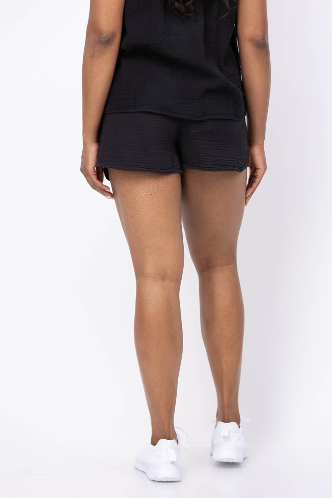 Embrace casual comfort with the XiRENA Starla Short in Black. Crafted from washed double-faced cotton gauze, these Dolphin shorts offer a soft, gently crinkled texture for a relaxed feel. Featuring an elasticized drawstring waist and side seam pockets, they provide both ease and practicality for your everyday wardrobe.