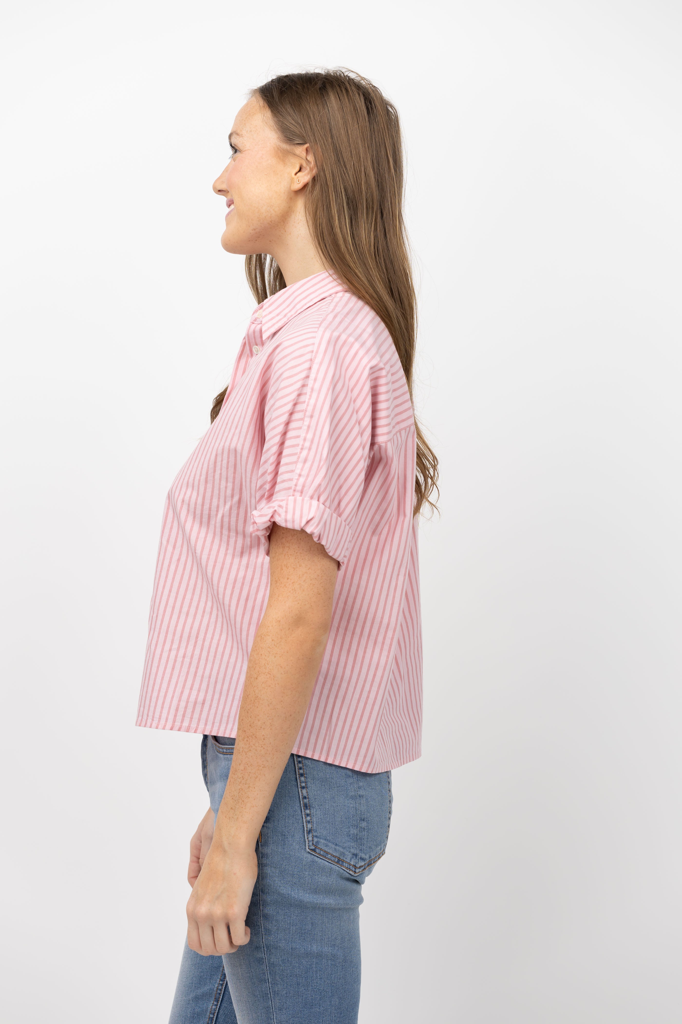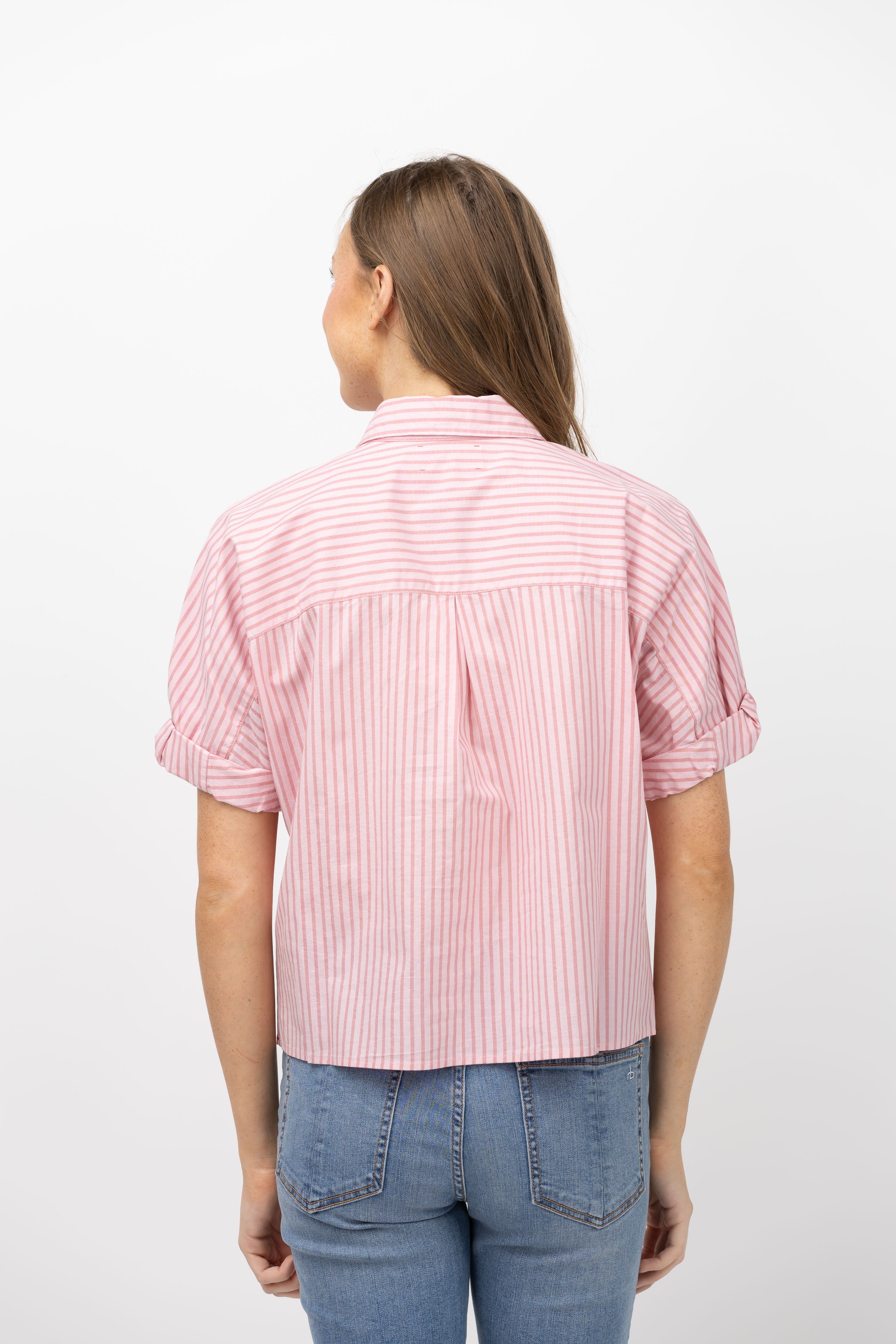 Indulge in stripes with Xirena's Teddy Shirt. Crafted in a yarn-dyed, two-tone pencil stripe, this cropped button-front shirt features a boxy fit, rolled sleeves, and a back yoke. The perfect blend of comfort and style!